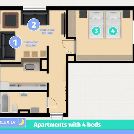 62 m² lielais izmitināšanas vieta atrodas Rīgas pludmales zonā, 15 minūšu braucienā ar auto no Rīgas lidostas. Kaķu nams ir aptuveni 5 minūšu braucienā no apartamentiem, bet Aleksandra Grīna bulvāra autobusu pietura atrodas tikai dažu minūšu attālumā no īpašuma.